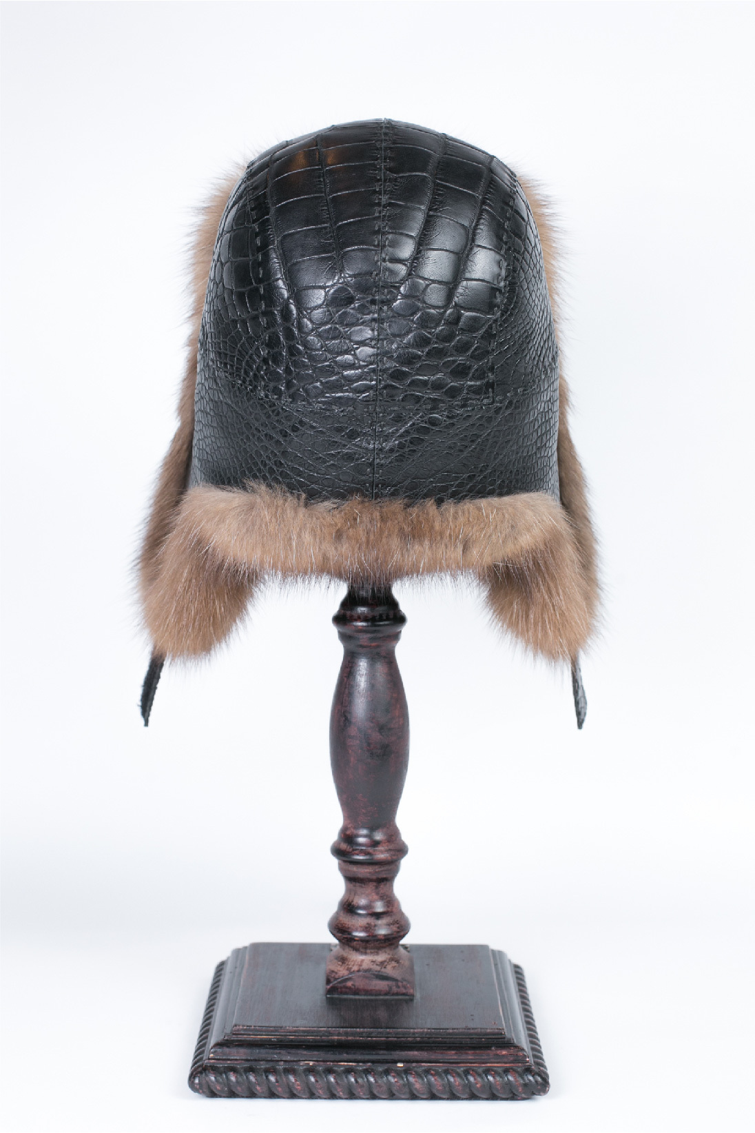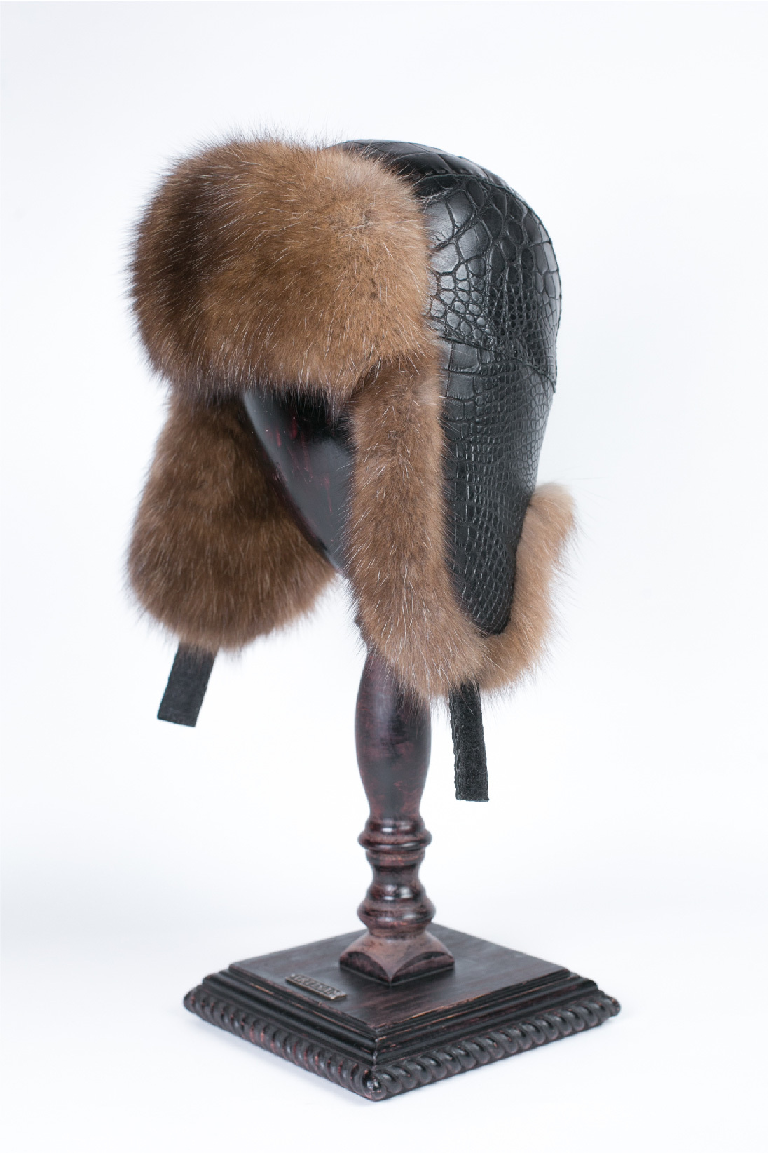 Эксклюзивный головной убор из меха соболя , верх из кожи крокодила с ручными декоративными строчками. Данное изделие изготавливается исключительно под заказ.