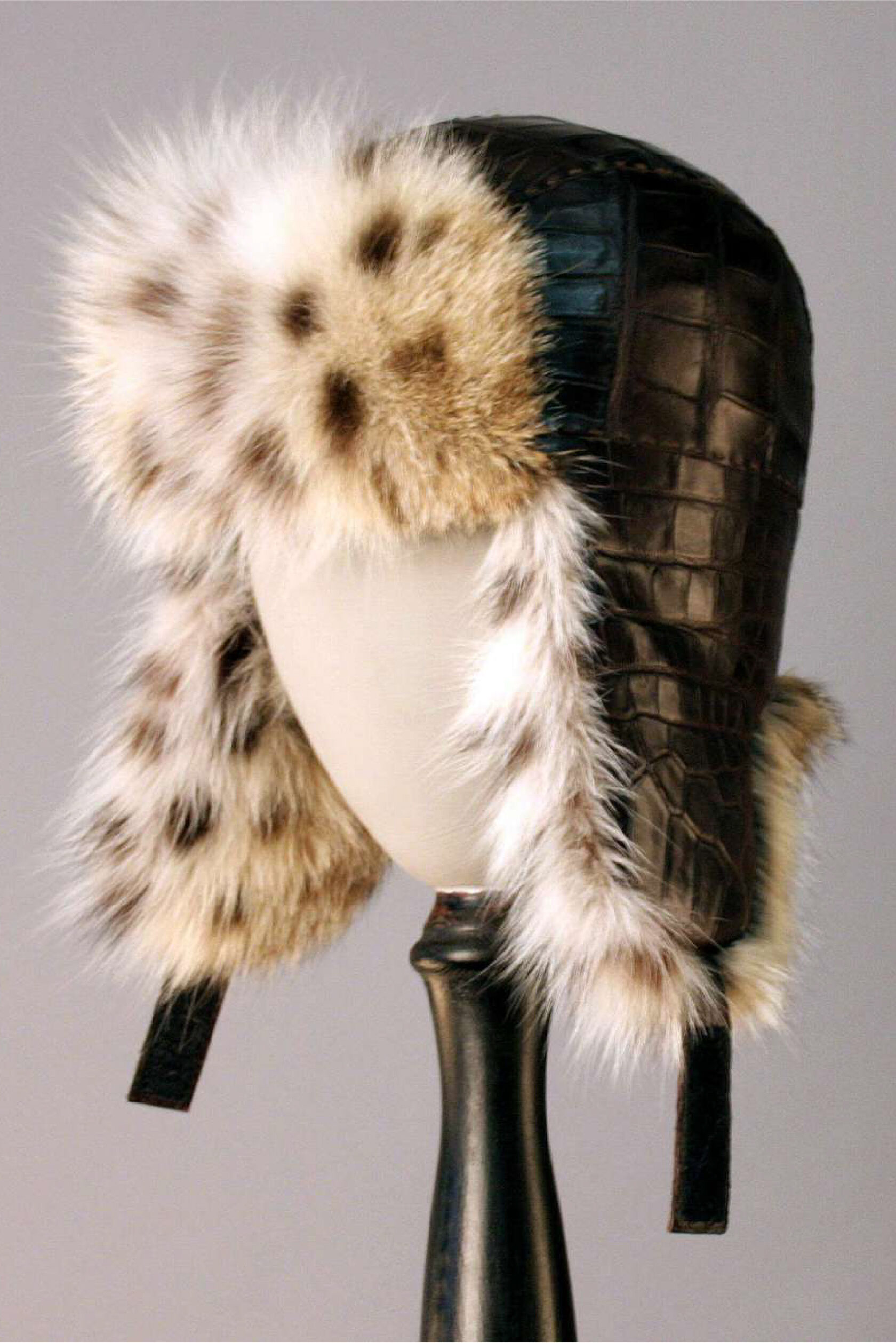 Эксклюзивный головной убор из меха канадской рыси, верх из кожи крокодила, собранный ручными отделочными строчками. Есть возможность регулировки размера. Данное изделие изготавливается исключительно на заказ!